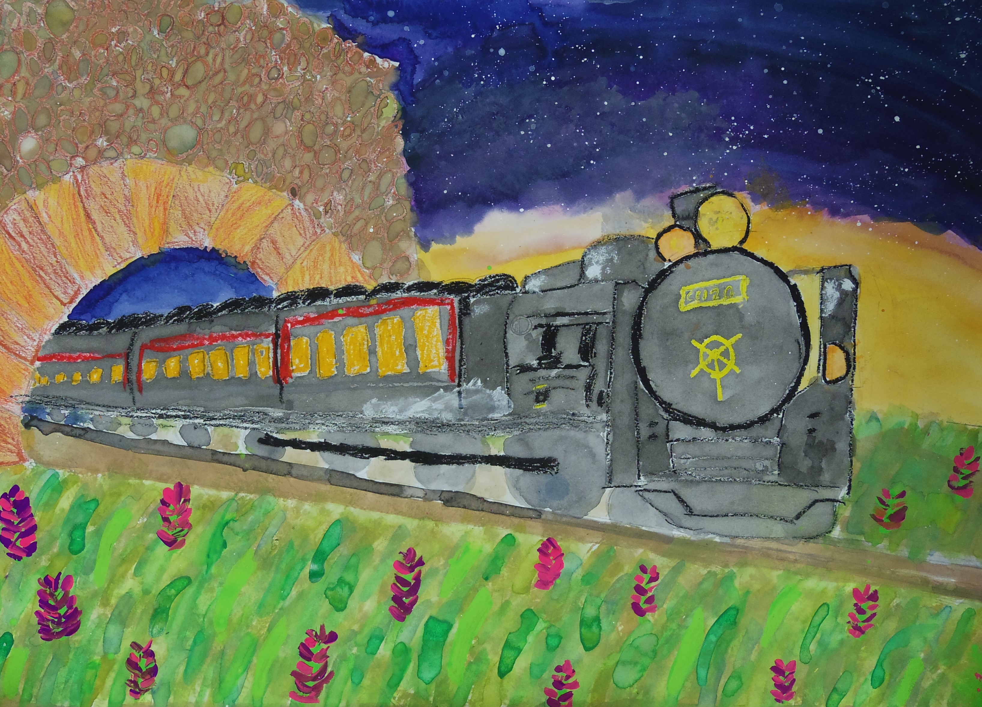 トンネルをぬけた蒸気機関車 2021年03月23日 小3 L子 L子ちゃんは「いつか蒸気機関車に乗りたいな」と話しながら楽しそうに描きました。家族皆で蒸気機関車に乗って旅行に行けたらどんなにかワクワクするでしょうね。この絵は3月26日からの「子どもの絵画展」に展示します。ぜひ見に来てください。 あゆみ会絵画教室 住所 〒245-0051 神奈川県横浜市戸塚区名瀬町2878-63 TEL 045-814-1477 営業時間 10:00〜18:00 定休日 日・月・火 « 横浜の森に住むふくろう 美しい羊山公園の芝桜 »