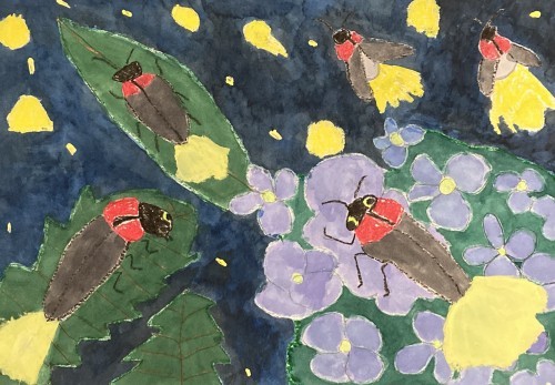 小学4年 MKさん お絵かき大好きなMKさん。「ホタルを見たよ」と話しながら描きました。たくさんいたんだね。 …