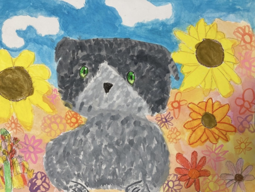 小学3年 KMさん お絵かき大好きなKMさん「ネコがお花畑にいるところを描きたいな」と言って描いていたのがこの…